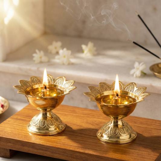 Traditional Brass Diya for Puja-Lotus Diya(Size-3)