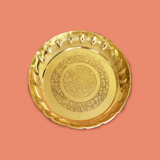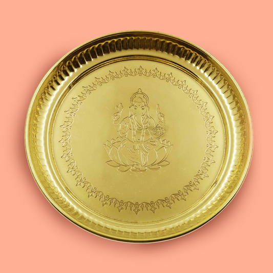 Brass Ganesha Itching Thali Size-11 (Pital Vinayak Puja Thali / Ganapati Plate)