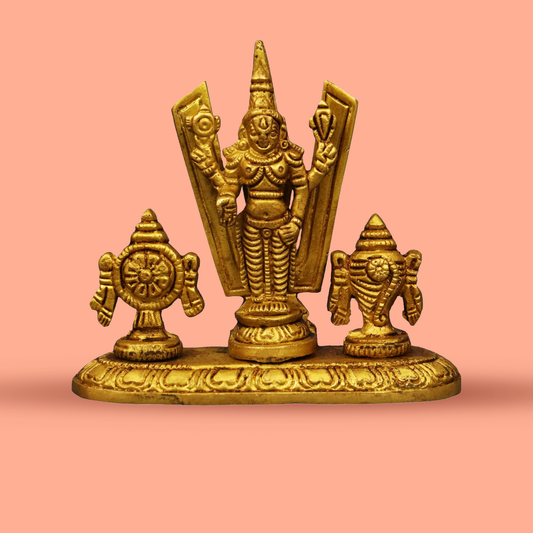 Brass Shangu Chakra Namah Perumal Statue (Pital Vishnu Murti / Tirupati Balaji)