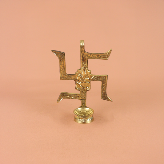 Brass Swastik Ganesh Diya (L.W. Swastik) (Pital Swastik Vinayak Deepak)