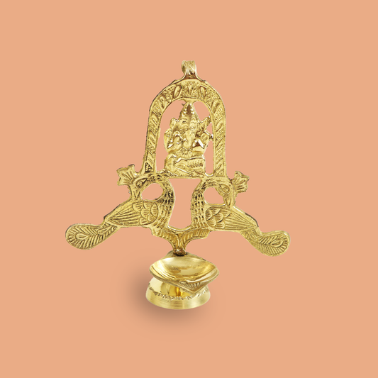 Brass Peacock Ganesh Diya (L.W More) (Pital Mor Vinayak Deepak)