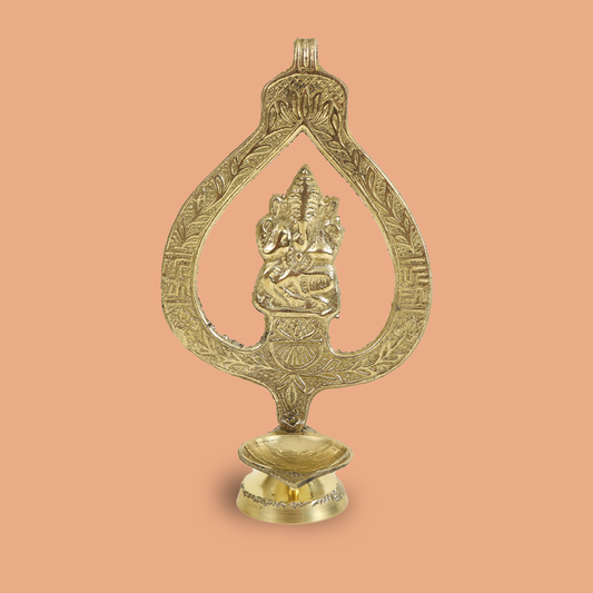 Brass Pan Ganesh Diya (L.W Pan) (Pital Paan Vinayak Deepak)