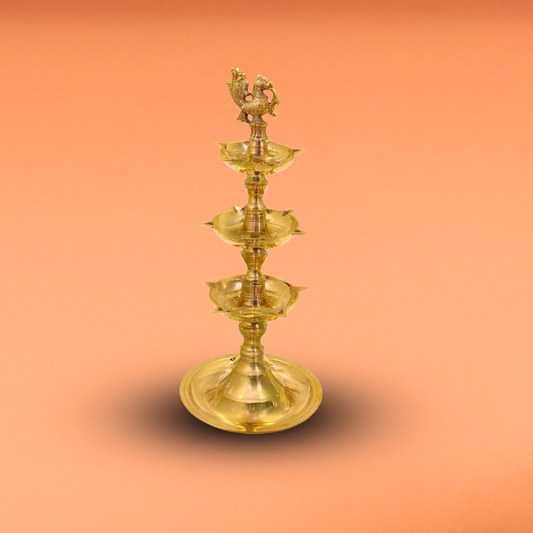 Brass Triple Step Peacock Diya (Pital Teen Sidhi Mor Deepak)
