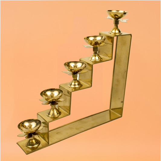Brass Five Step Diya (Pital Panch Sidhi Deepak)