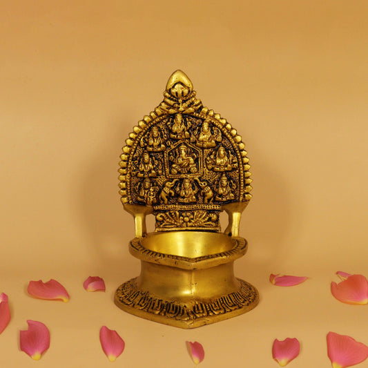 Antique Ganesh Astalakshmi Diya (Pital Vinayak Deepak / Ganapati Vilakku)