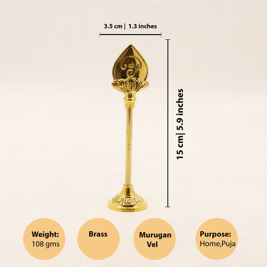 Lord Muruga Vel God Idol with Round Base Size [110gm] - Vel Stand 15cm