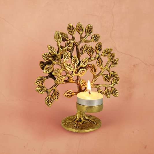 पीतल का 8 इंच कल्पवृक्ष वृक्ष मोमबत्ती होल्डर के साथ