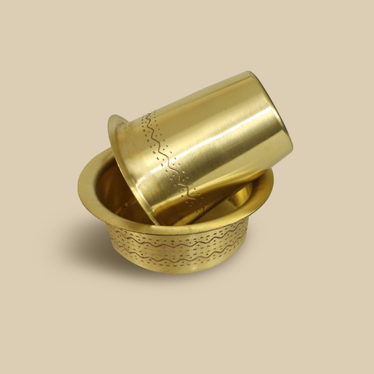 दक्षिण भारतीय पीतल मैट खुजली कॉफी डबरा सेट