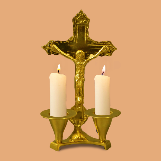 पीतल जीसस क्रॉस मोमबत्ती स्टैंड