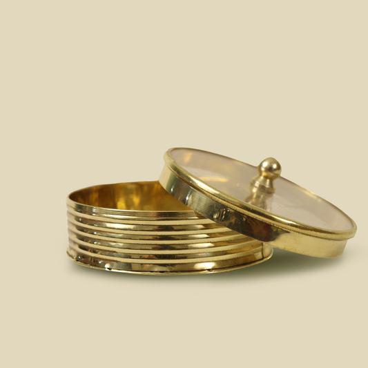 पीतल और ऐक्रेलिक कुमकुम बॉक्स पारदर्शी ढक्कन