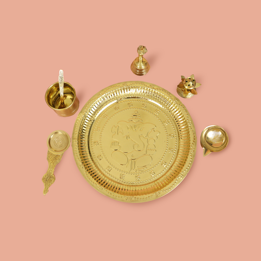 Saleगणेश पीतल थाली सेट