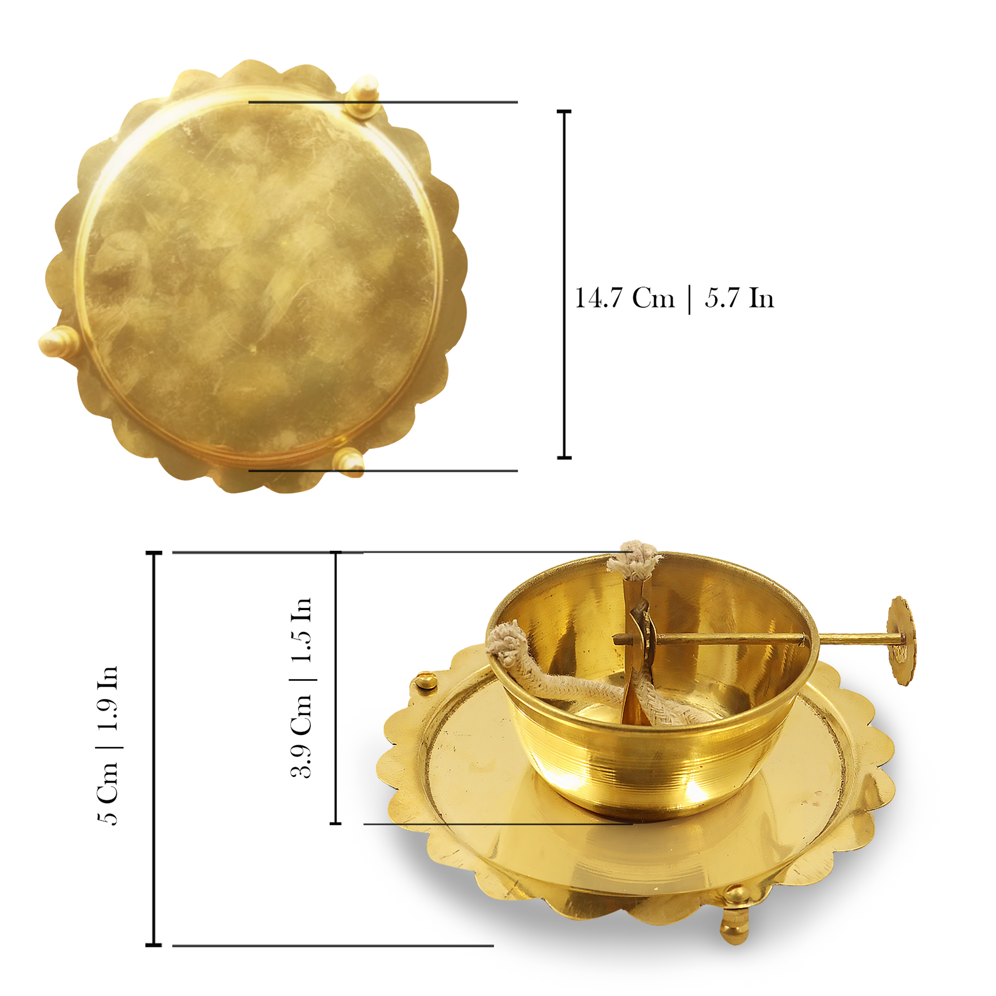 Add more elegance to your Puja rituals with this elegant Metal Diya which bears an ample space to hold the oil and the 'batti'. This Beautiful Lamp is used for lighting purposes using a cotton ball.