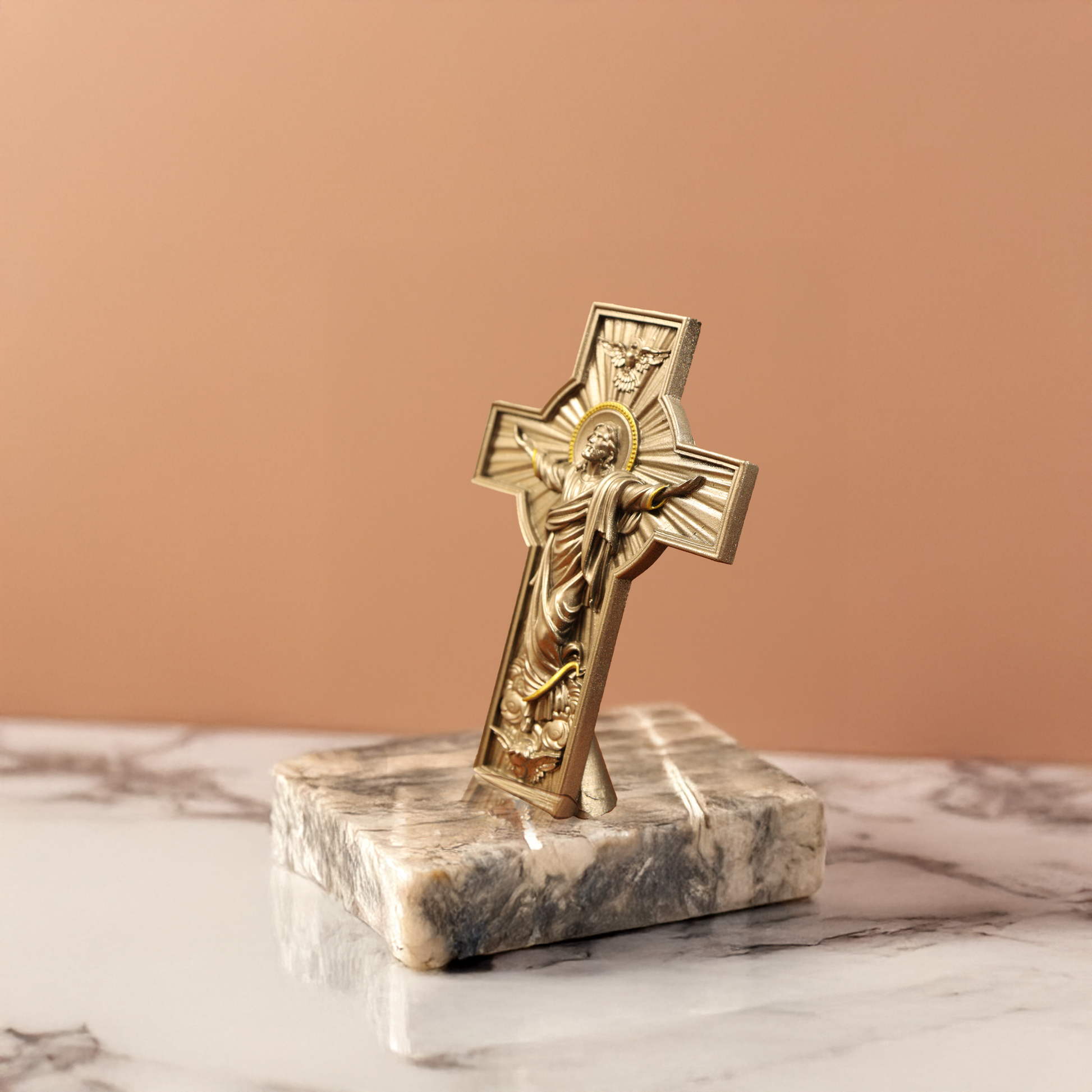 This gold-finished Jesus Cross embodies faith, hope, and divine sacrifice, making it a sacred symbol of devotion and spiritual strength.