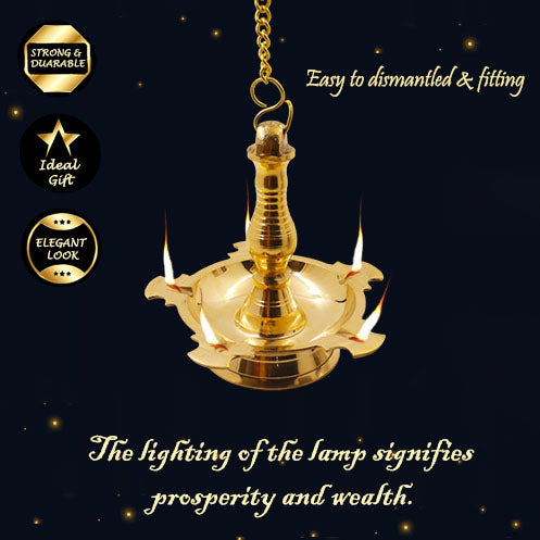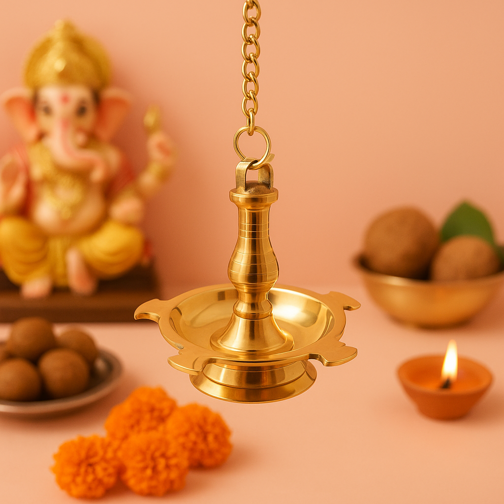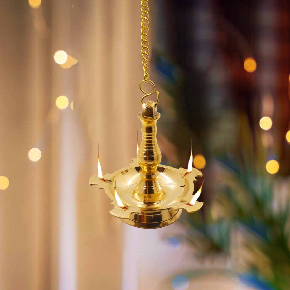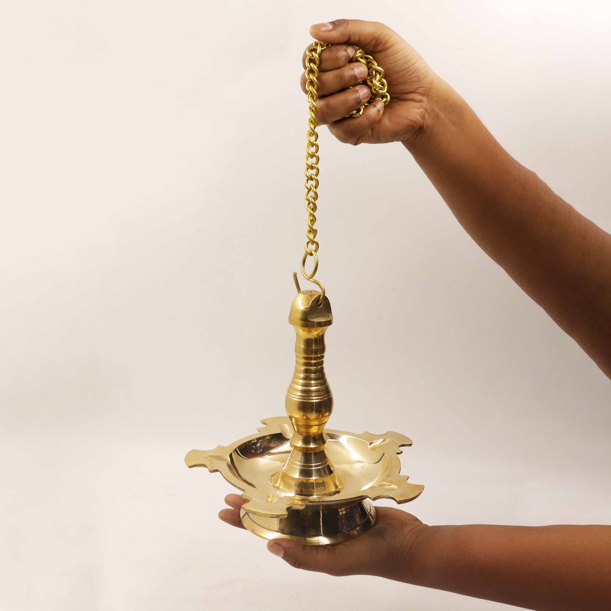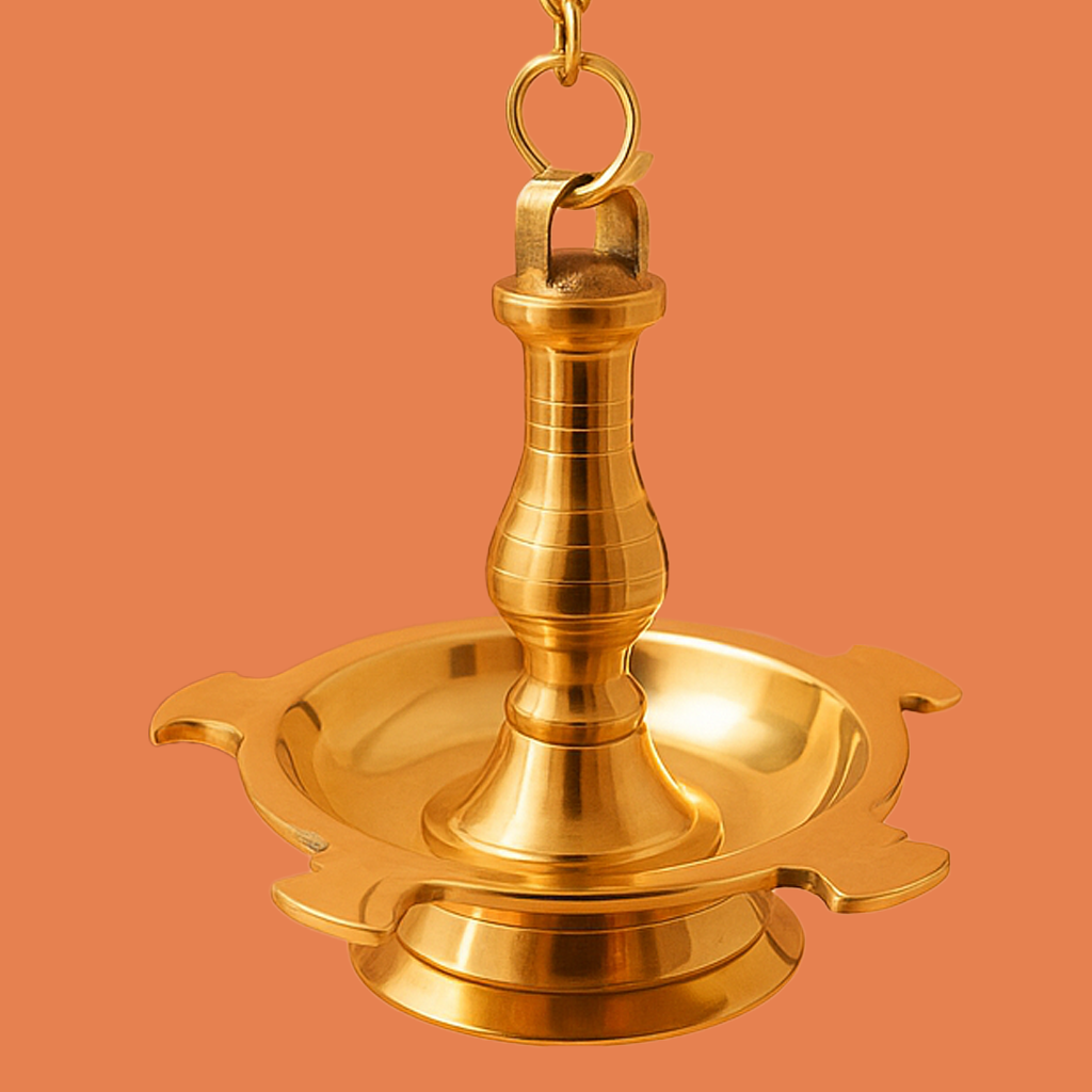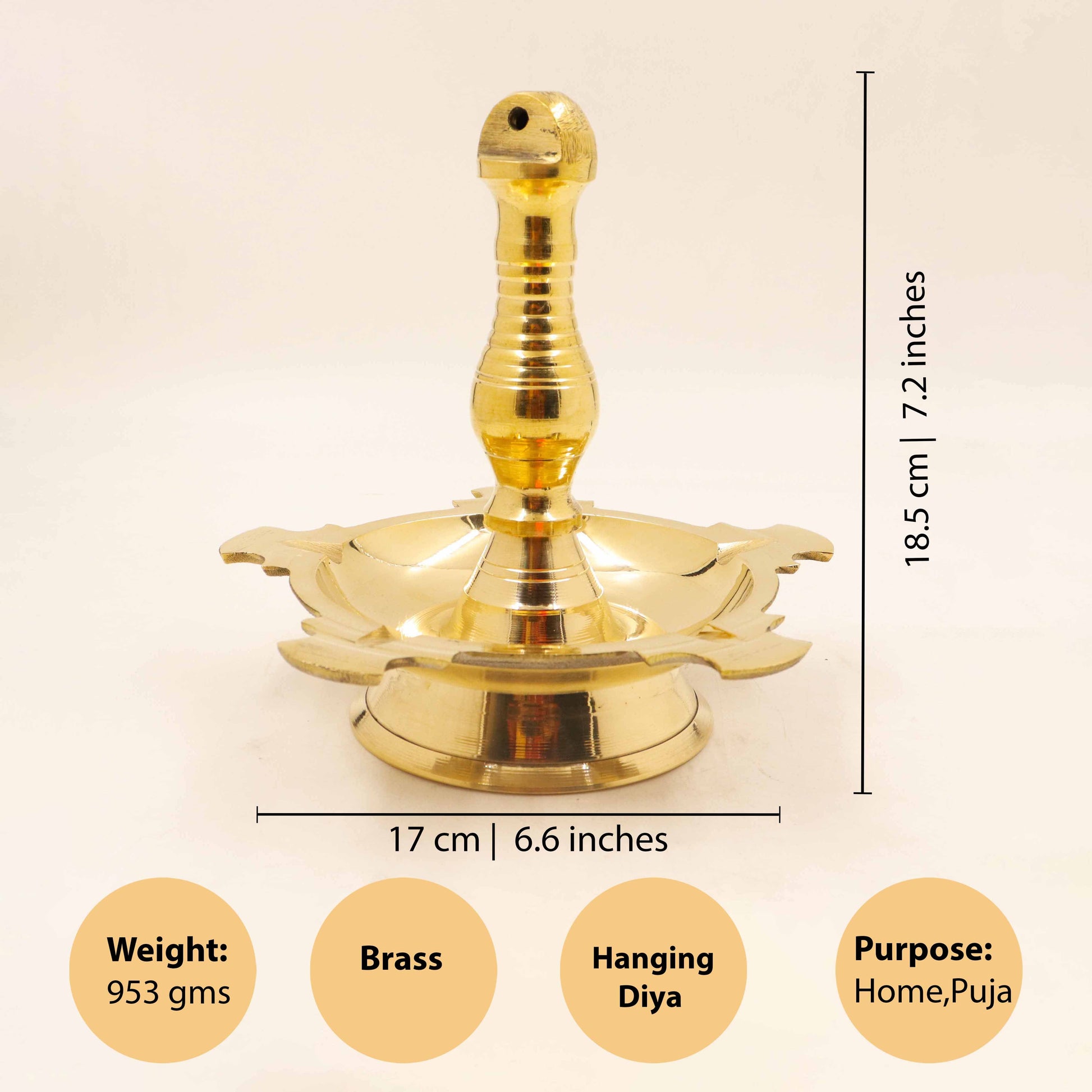 Usage : Designed to be hung (thooku vilakku style) in pooja rooms, temples, or verandahs; ideal for lighting during prayers and rituals.
