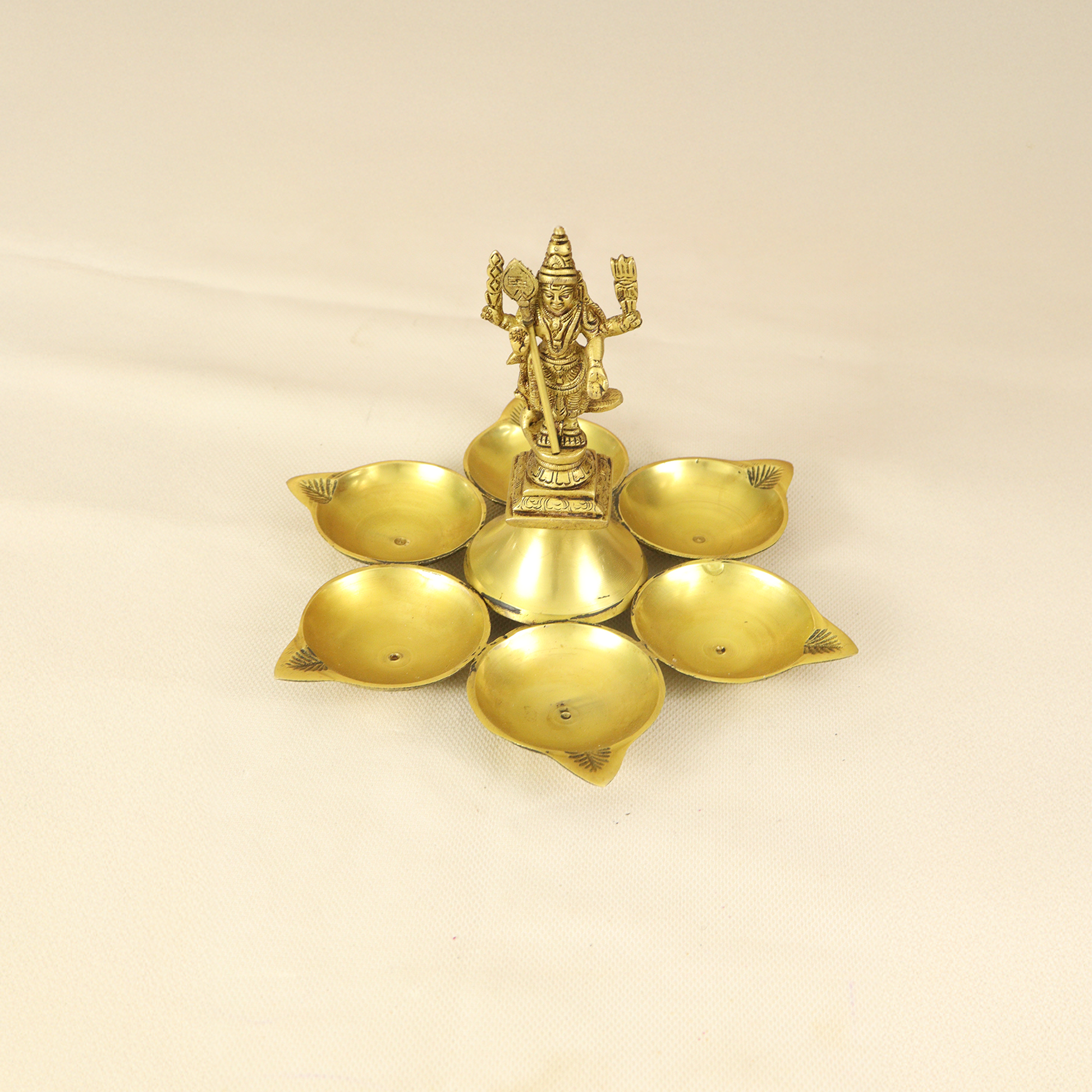 Usage    Suitable for pooja rooms, home altars, and temples. Can be used with oil or ghee to light all six diyas simultaneously during prayers and special rituals.