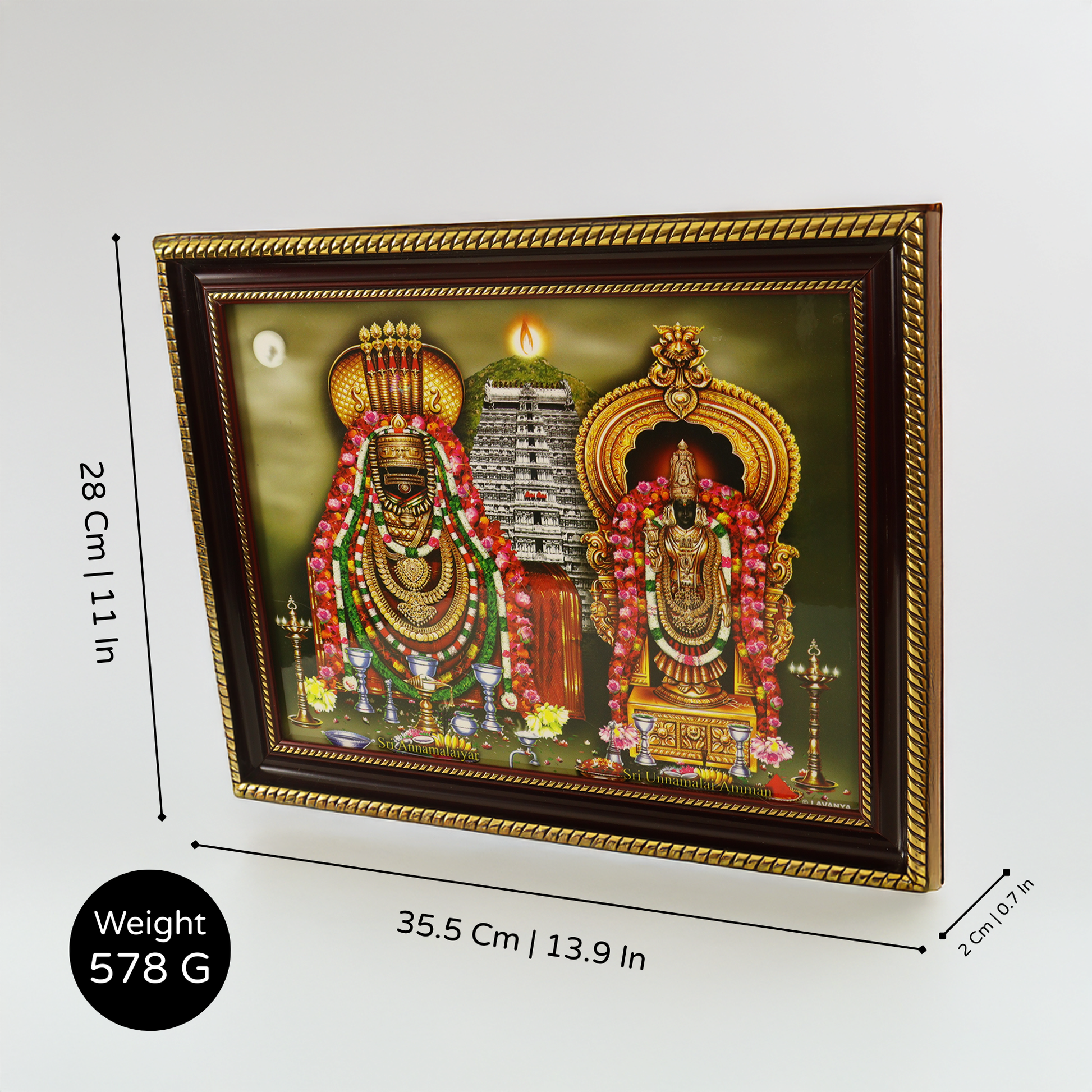 About This Item (Short Description) | A golden devotional photo frame of Lord Annamalaiyar, designed to bring spiritual light, divine protection, and blessings of Lord Shiva into your home and workplace. |