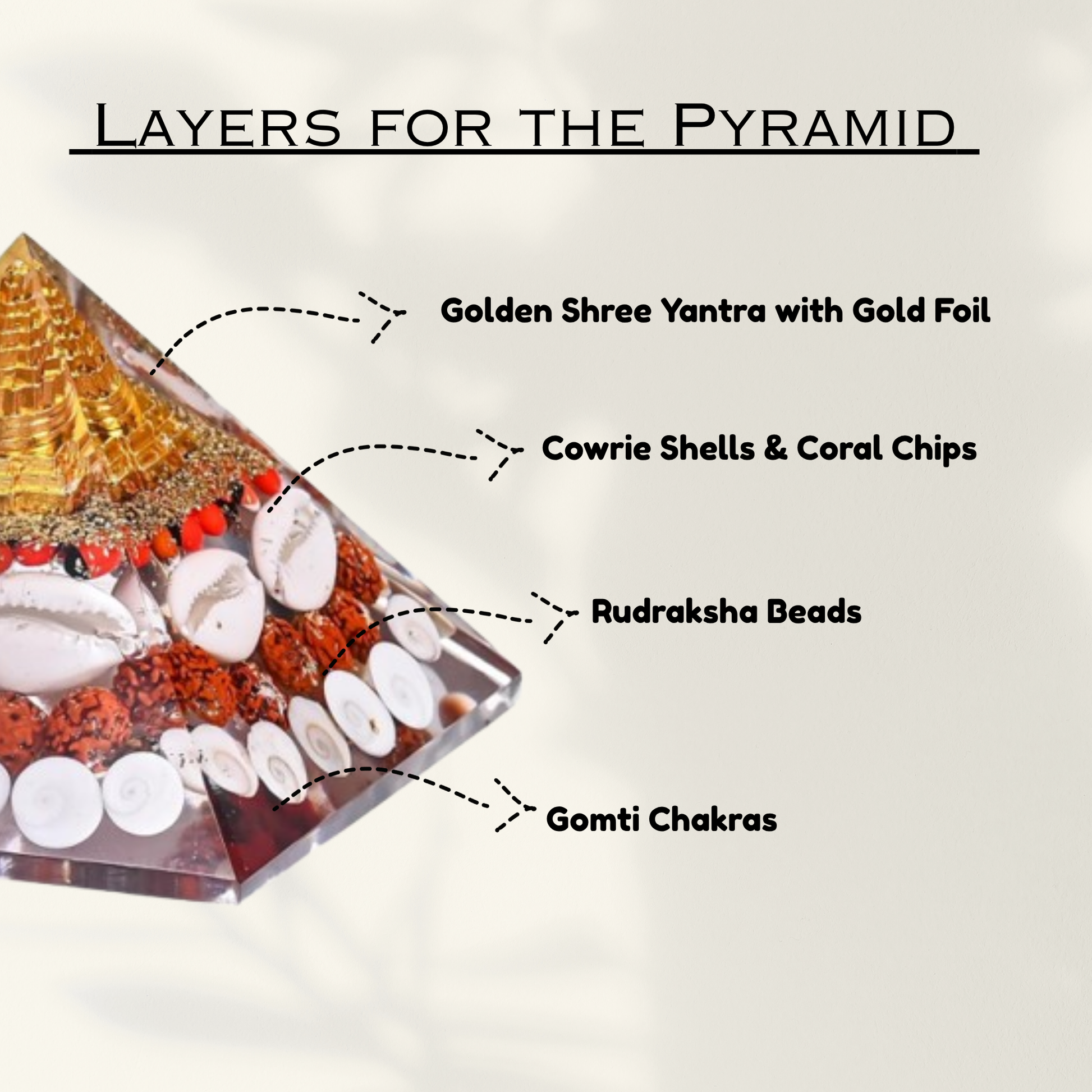 Material Quality | Carefully handcrafted pyramid combining sacred Gomathi Chakras, Rudraksha beads, and durable resin base for strength and longevity. |