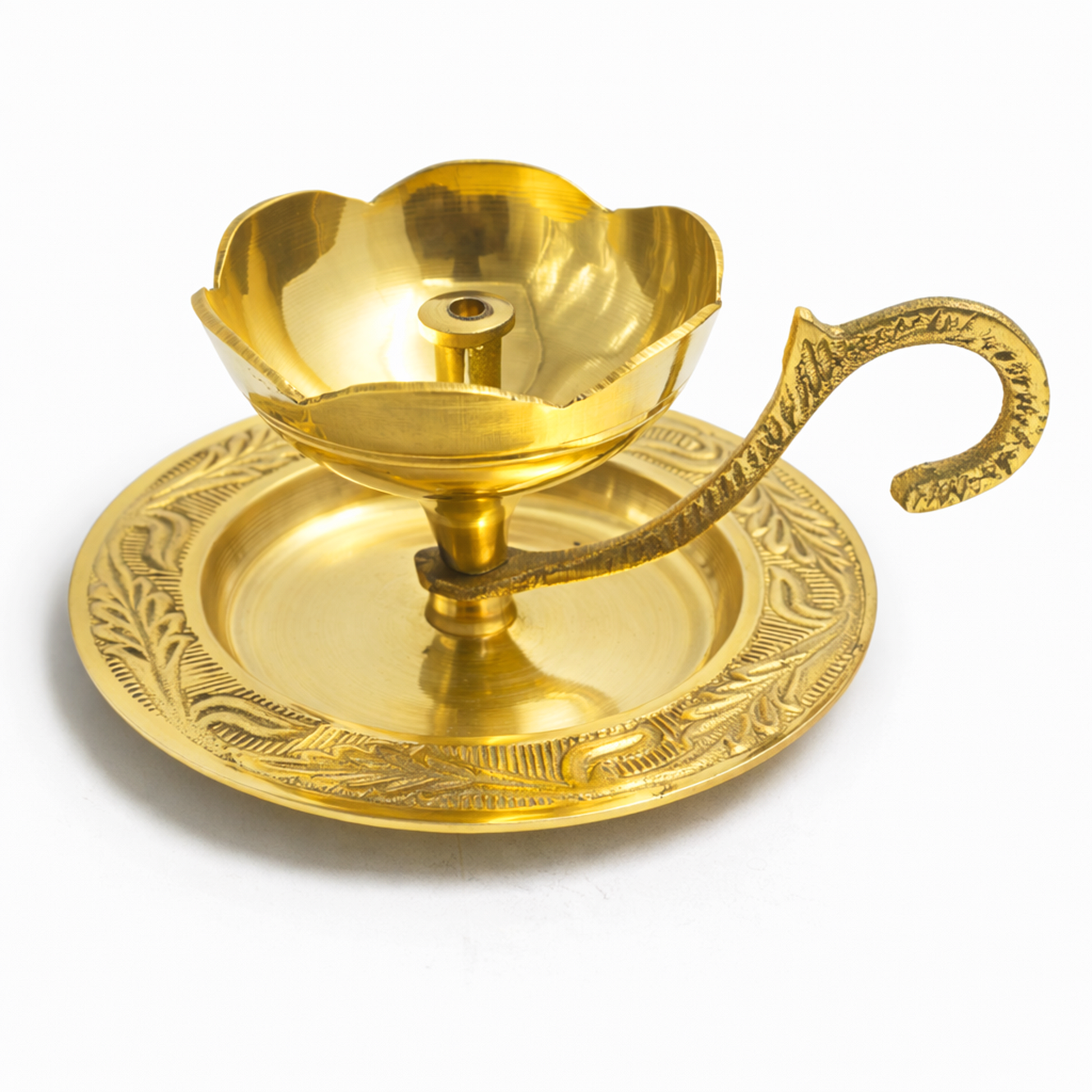 | Customer Benefits | Creates a peaceful spiritual ambiance during prayers, easy and safe to hold during aarti, durable brass construction for long-term use, practical design with plate to prevent spills, and a meaningful devotional gift for festivals and auspicious occasions. |