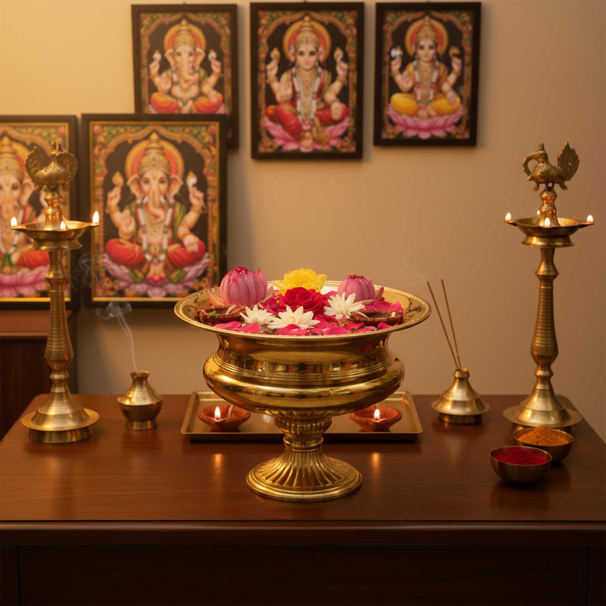 | Customer Benefits | Enhances traditional home décor with a classic brass finish, creates a welcoming and peaceful ambiance, versatile for flowers, diyas, or planters, durable brass construction for long-term use, and a thoughtful gift for festivals and housewarming occasions. |